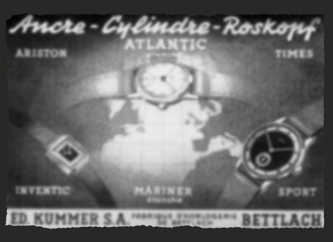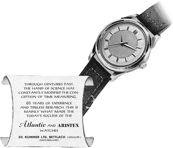 Szwajcarskie zegarki Atlantic powstały dzięki wierzącemu w siłę przemysłu zegarmistrzowi, Eduardowi Kummerowi. Pierwszą nazwę, EKB (Eduard Kummer Bettlach), zmieniono w roku 1952 na obecną nazwę ATLANTIC, by zachować spójność z logiem firmy. Logo stanowią kotwica i cyrkiel, składające się w literę A. Sam napis “Atlantic” zmieniał się na przestrzeni lat. Na jego podstawie można często określić datowanie konkretnego modelu.